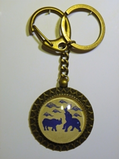 ELEFANTE CON RINOCERONTE AZUL LLAVERO