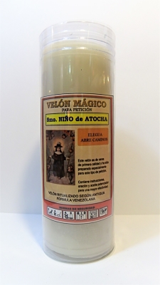 Velón esotérico ritualizado para ofrenda a Eleggua o Niño de Atocha. Abrecaminos.