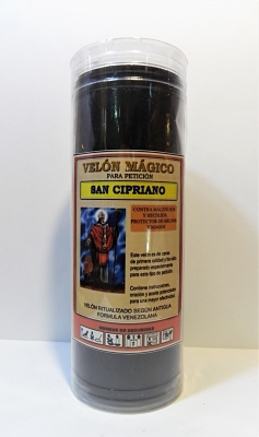 Velón esotérico ritualizado para ofrenda a San Cipriano. Para protección contra maleficios y hechizos.
