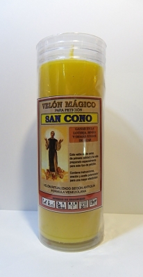 Velón esotérico ritualizado para ofrenda a San Cono. Para ganar en la Lotería y otros juegos de azar.