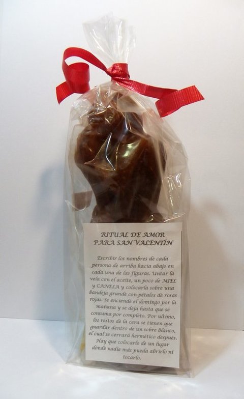 Ritual para atraer el amor, compuesto por una vela de miel con forma de pareja y aceite ritualizado de amor. Con instrucciones.