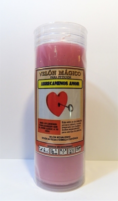 Velón esotérico ritualizado para eliminar todo tipo de obstáculos que nos impiden que el amor llegue a nuestra vida. Nos permite estar en el sitio adecuado en el momento oportuno para que el amor llegue hacia nosotros con mayor facilidad.